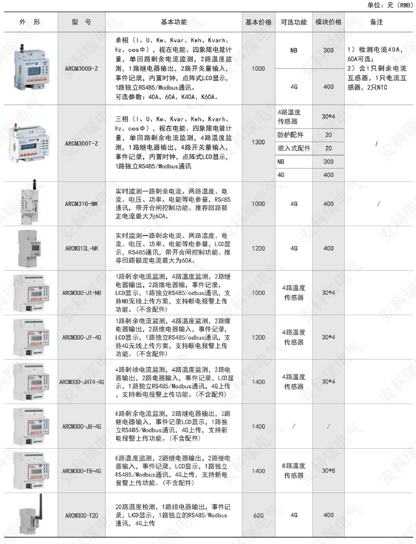 技术要求:一路剩余电流检测、二路温度检测、一路单相电压、一路单相电流、电压、功率、电能等电参量
