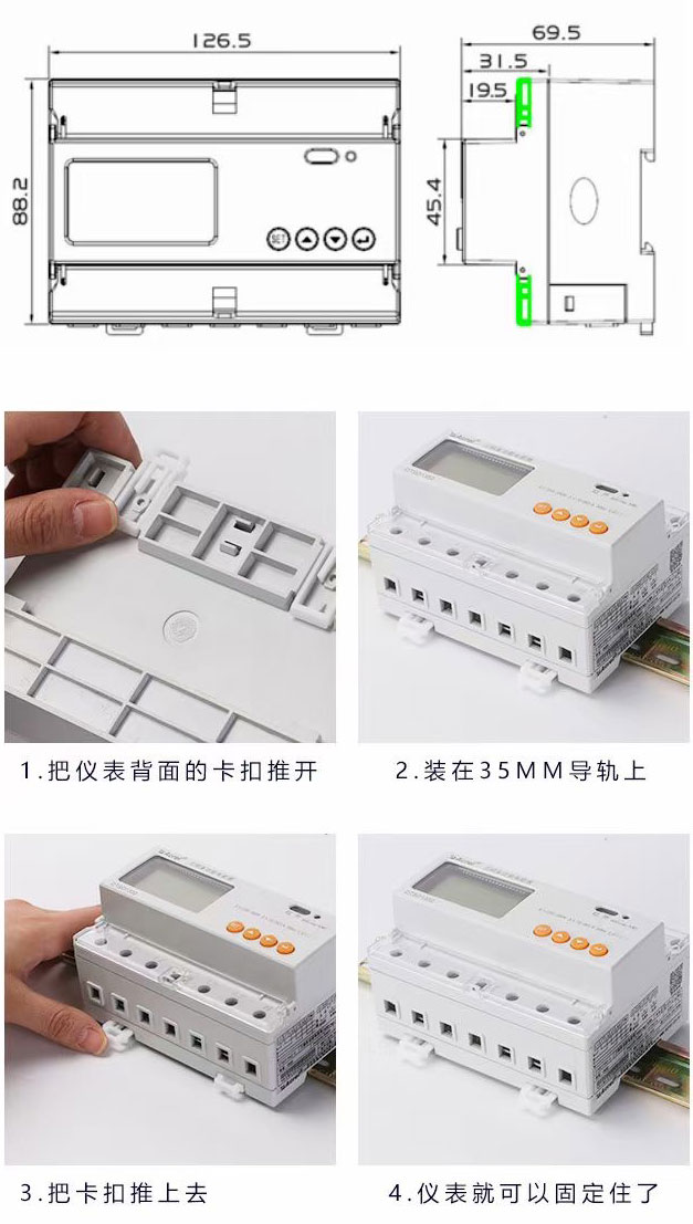 该系列产品采用DIN35mm导轨式安装结构,体积小巧,能测量电能及其他电参量,可进行时钟、费率时段等参数设置,精度高、可靠性好、性能指标符合国标GB/T17215-2002、GB/T17883-1999和电力行业标准DL/T614-2007对电能表的各项技术要求,并且具有电能脉冲输出功能;可用RS485通讯接口与上位机实现数据交换。