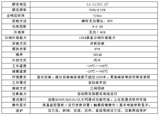 技术参数:无功补偿容量250kvar,谐波补偿电流125A