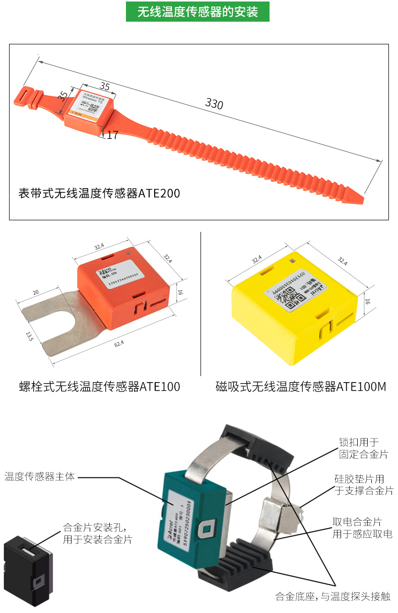 适用于高低压开关柜内电缆接头、断路器触头、刀闸开关、高压电缆中间头、干式变压器、低压大电流等设备的温度监测。