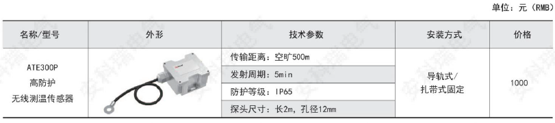 ARTM-Pn无线测温装置:ARTM-Pn无线测温装置可以单独安装在高压柜、低压抽屉柜内,每台装置可以接收18个传感器的数据,传感器型号可选配ATE100、ATE200、ATE300。装置带有一路485接口,可将采集到的温度数据上传到监控中心。
