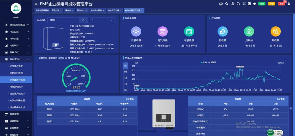 采用EMS能源管理解决方案,采集电表和逆变器的电压电流功率电能等数据,形成电能一次系统图,实现用电的智能化管理。在每一个配电间还加装有烟感、水浸、门磁等来监测配电间整体环境状态保证用电的安全性。在配电环节加装有我们公司的电能质量和滤波装置更好的保证了用电的可靠性。