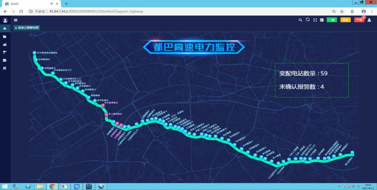 高速公路供配电监控系统对高速公路沿线的变电站内的高低压配电设备、发电机、变压器 、UPS、EPS 、外场照明、隧道内的理地式变压器与照明 、通风及排水等机电设备进行实时分布式监控和集中管理,实现无人值守,确保高速公路安全畅通,提高自动化管理水平,降低机电设备的运行维护成本。