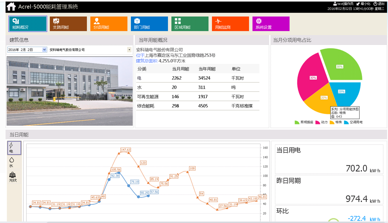 该项目包括1个仓库,2个生产车间,4个箱变,1个景观箱变总计8个单体。具有用电范围比较广且负荷比较大的特点,因此对用电的实际运行情况和能耗统计有极高的要求。