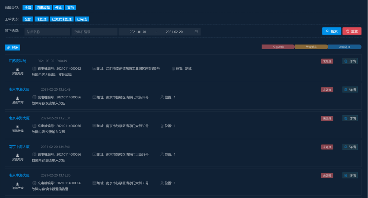 故障管理包括故障代码、故障记录、故障处理、故障分析等管理项,为用户管理故障和查询提供方便。