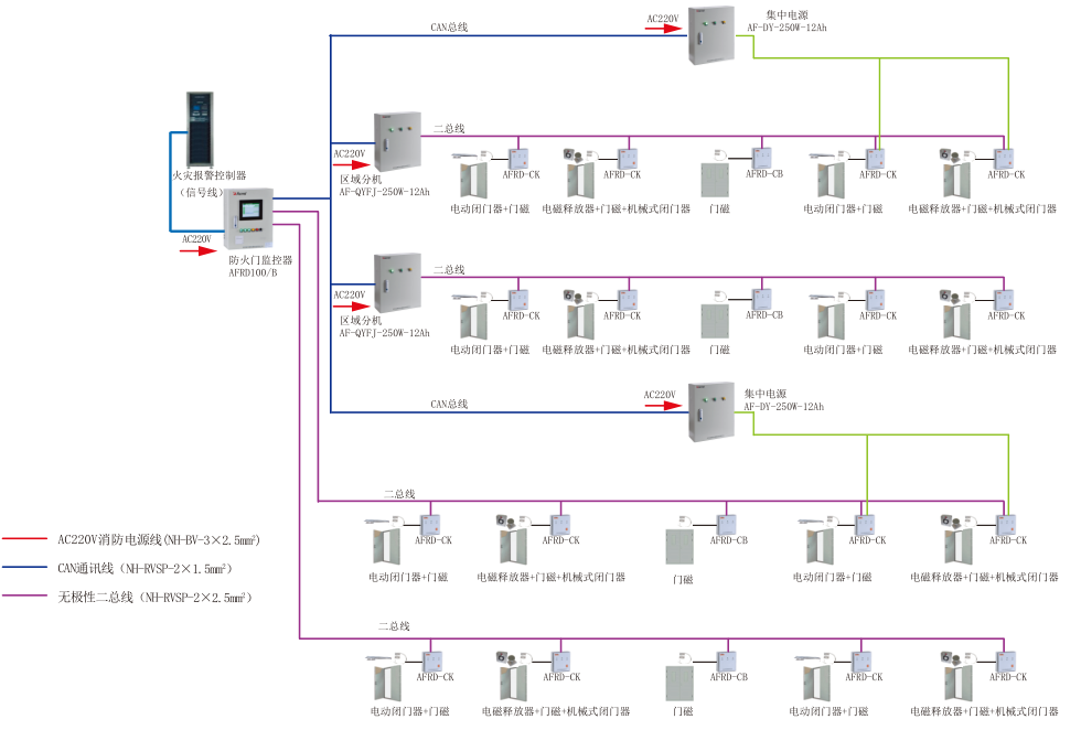 本系统可与火灾自动报警系统联动,当发生火情时,可接收火灾报警系统发出的信号,并通过总线,将指令发布到每个终端,自动关闭所有常开防火门,隔离火源和烟雾。