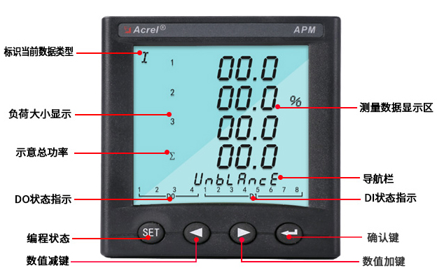APM系列网络电力仪表按IEC标准设计,具有全电量测量,电能统计,电能质量分析及网络通讯等功能,主要用于对电网供电质量的综合监控诊断及电能管理。该系列仪表采用了模块化设计,当客户需要增加开关量输入输出,模拟量输入输出,SD卡记录,以太网通讯时,只需在背部插入对应模块即可。