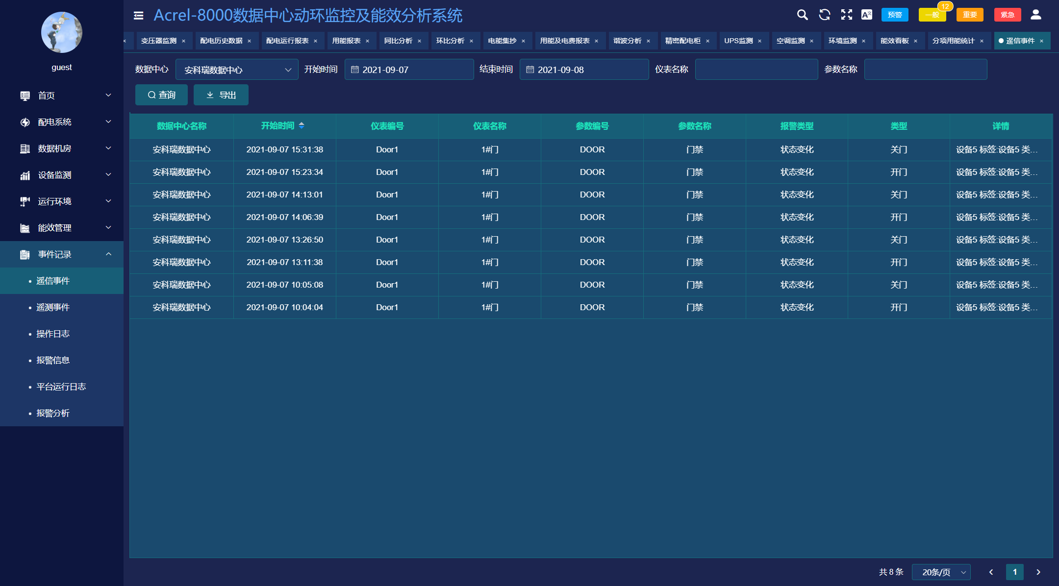 电力监控系统能够对遥信变位,保护动作、事故跳闸,以及电压、电流、功率、功率因数越限等事件记录进行存储和管理,方便用户对系统事件和报警进行历史追溯,查询统计、事故分析。