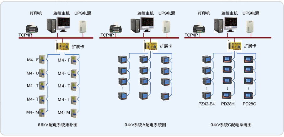 1.系统运行监视和控制:在监控界面中,显示整个电力监控系统的网络图,动态刷新显示各主接线图上的实时运行参数和设备运行状态,支持远程控制功能。
