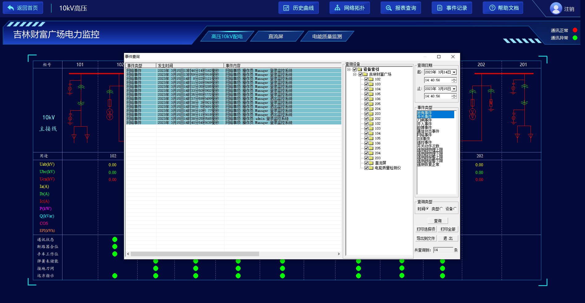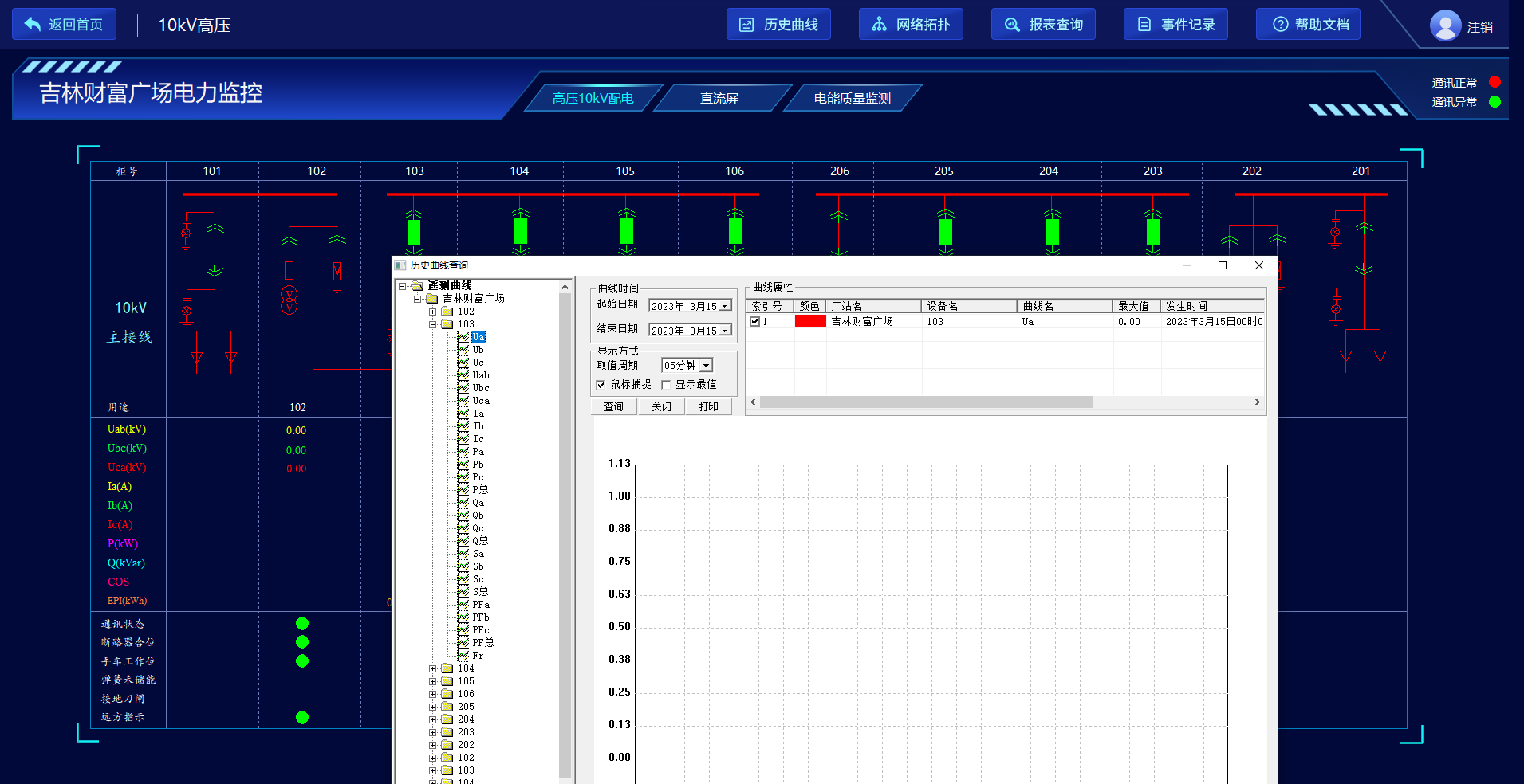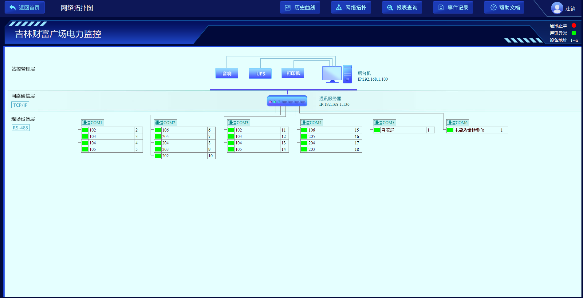 吉林财富购物广场1个高压配电室采集8台安科瑞AM5微机保护;7台安科瑞AMC96-E4微机保护。