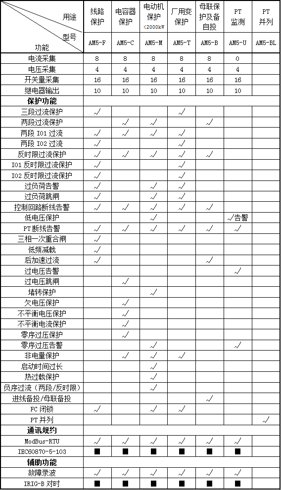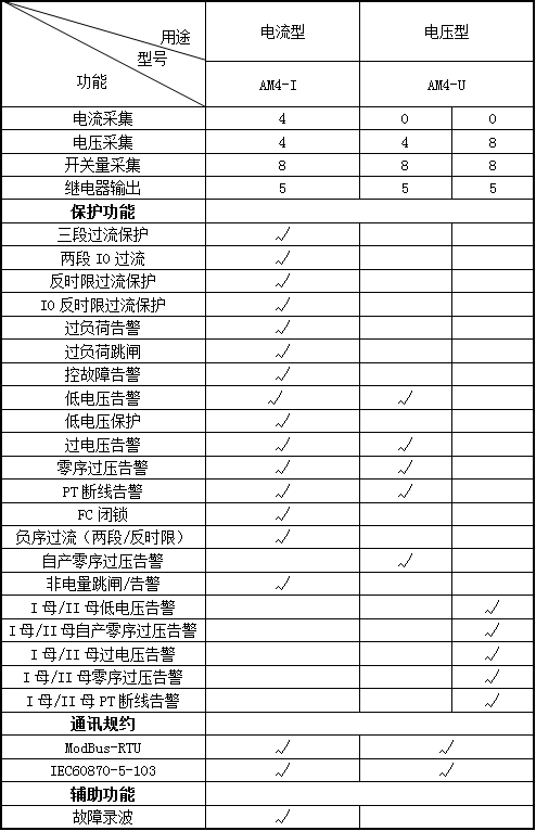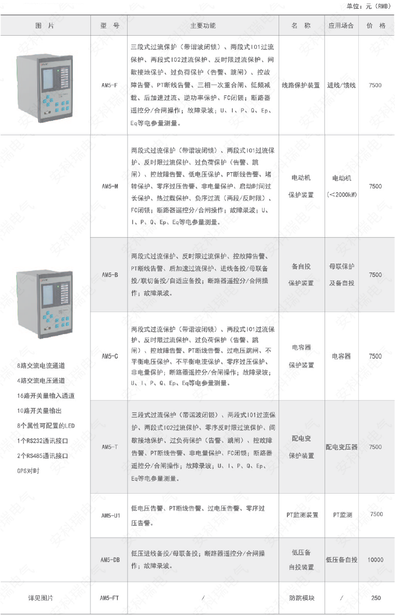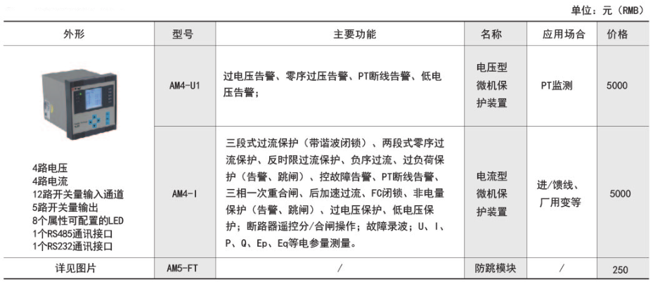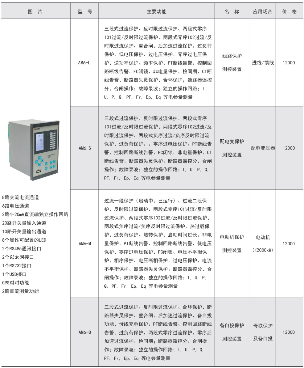 AM系列微机保护测控装置集保护、测量、控制于一体,适用于35kV及以下电压等级的用户终端变电站(所),可实现用户变电站的保护和测控。